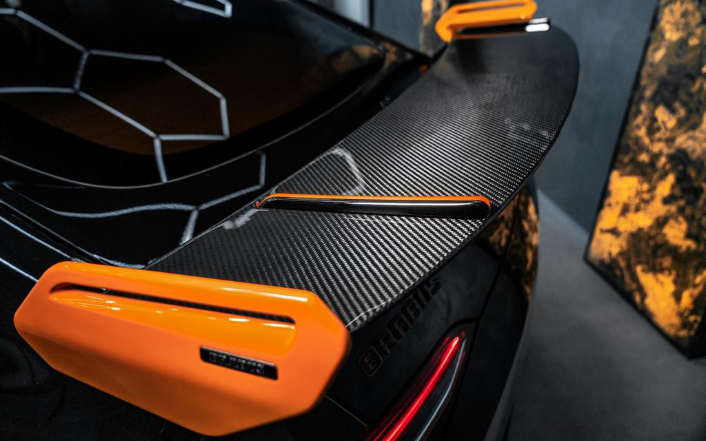 Design vystaveného vozu v černém metalickém laku je definován karbonovým širokým bodykitem, který činí vůz o 6,7 cm širší než sériový AMG GT. Každý detail – od aerodynamických prvků z uhlíkových vláken po ikonické čtyři výfukové koncovky z karbon-titanu – podtrhuje extrémní dynamiku a čistý výkon. Výrazné BRABUS Monoblock P kované disky, obuté do pneumatik Continental SportContact 7, umožňují dosažení rychlostí přes 300 km/h s naprostou stabilitou.