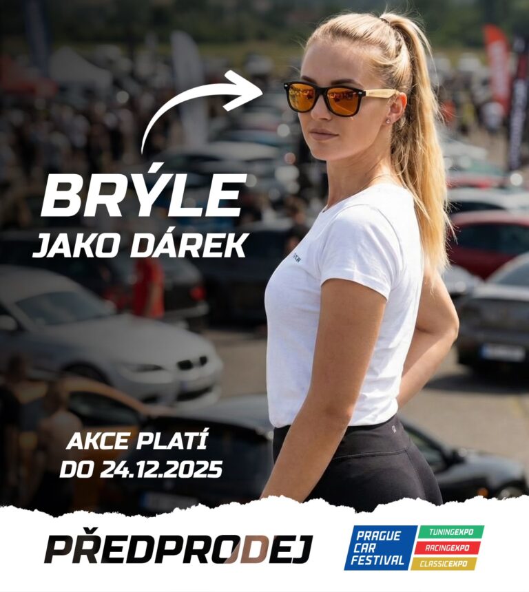 Máme pro vás vánoční dárek! Vstupenky na příští rok jsou v prodeji za skvělé akční ceny. Pokud při nákupu vložíte do pole Mám promo kód heslo "vanoce2025", otevře se Vám navíc limitovaná vánoční edice jednodenních vstupenek za cenu 500 Kč. Ke každé této vstupence od nás jako dárek dostanete stylové sluneční brýle Prague Car Festival! Brýle si vyzvednete přímo na výstavě načtením QR kódu ze vstupenky.