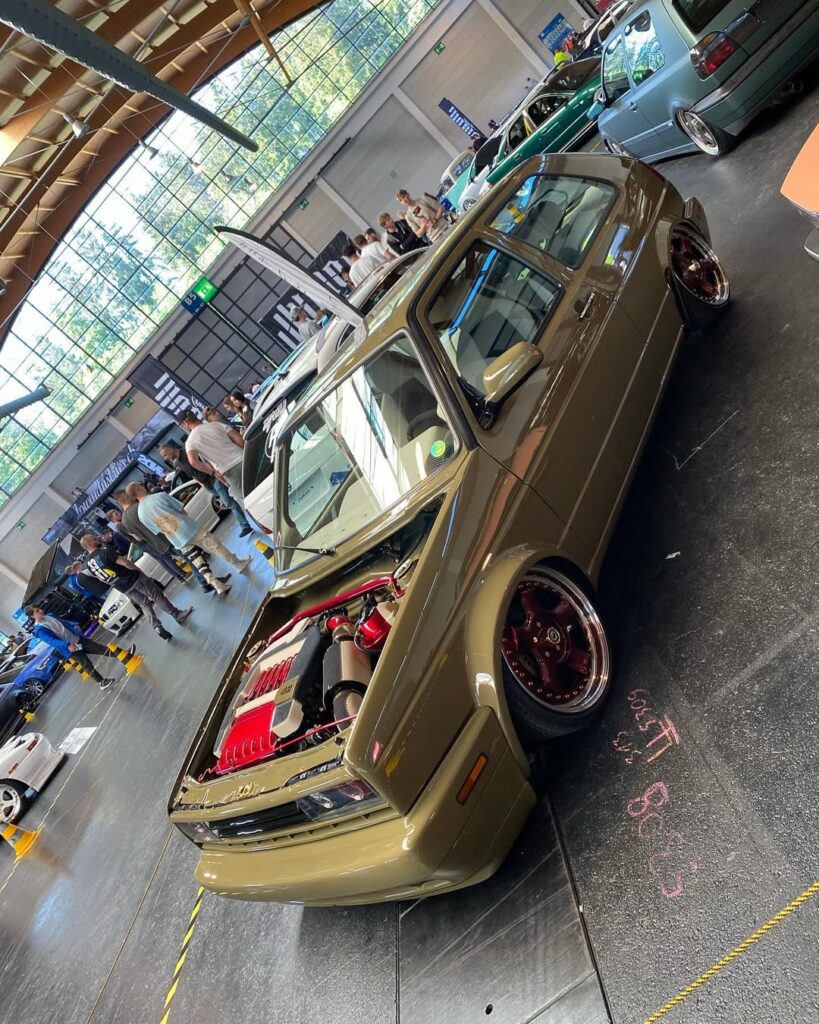 Na druhý pohled úplně jiný svět, ale stejně působivý. Golf druhé generace je jedním z nejpopulárnějších youngtimerů, ale tento projekt ukazuje, že i klasika může být dotažena k naprosté dokonalosti. Pod kapotou se ukrývá srdce v podobě motoru 3.2 VR6 – legendární jednotky, která zajišťuje nejen vysoký výkon, ale i nezaměnitelný zvuk. Auto stojí na vzduchovém podvozku, který mu dovoluje měnit charakter podle okamžiku – jednou působí jako nenápadný retro vůz, podruhé se přikrčí k asfaltu a stane se špičkovou showcar atrakcí. Celý projekt je vybudován s neuvěřitelným smyslem pro detail. Markus, majitel tohoto vozu, si dal záležet na každém šroubku a každém prvku. Výsledkem je vůz, na němž lze jen stěží nalézt jedinou nedokonalost. Ať už jde o čistotu motorového prostoru, kvalitu laku nebo perfektní sladění interiéru, tento Golf II R32 se právem řadí mezi vrcholy evropské tuningové scény.